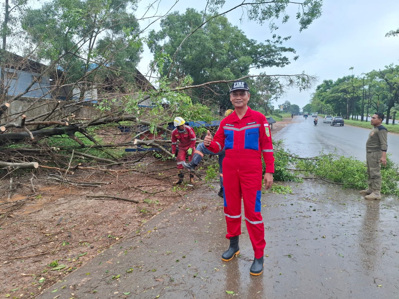 DISDAMKARMAT KOTA BATAM – Cuaca ekstrim hari ini esekusi 11 titik lokasi pohon tumbang oleh Dinas Pemadam Kebakaran dan Penyelamatan Kota Batam. Jum’at, 21