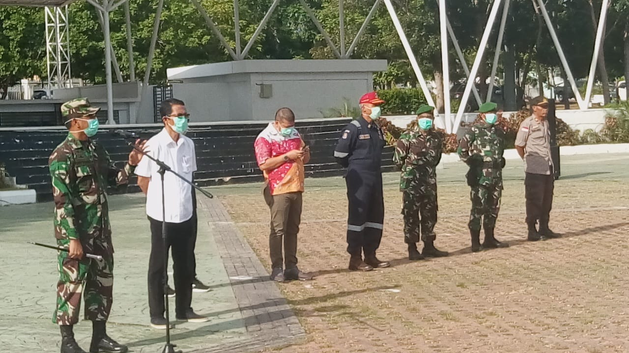 Dinas Pemadam Kebakaran Kota Batam beserta TNI, POLRI, DISHUB, SATPOL PP dan Dinkes melakukan penyemprotan desifektan guna untuk mencegah penularan wabah virus corona COVID