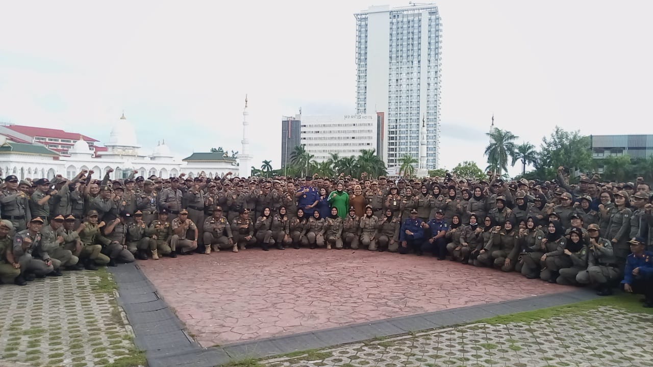 APEL DAN SENAM PAGI GABUNGAN SATPOL PP DAN DAMKAR KOTA BATAM DI ALUN-ALUN ENGKU PUTRI