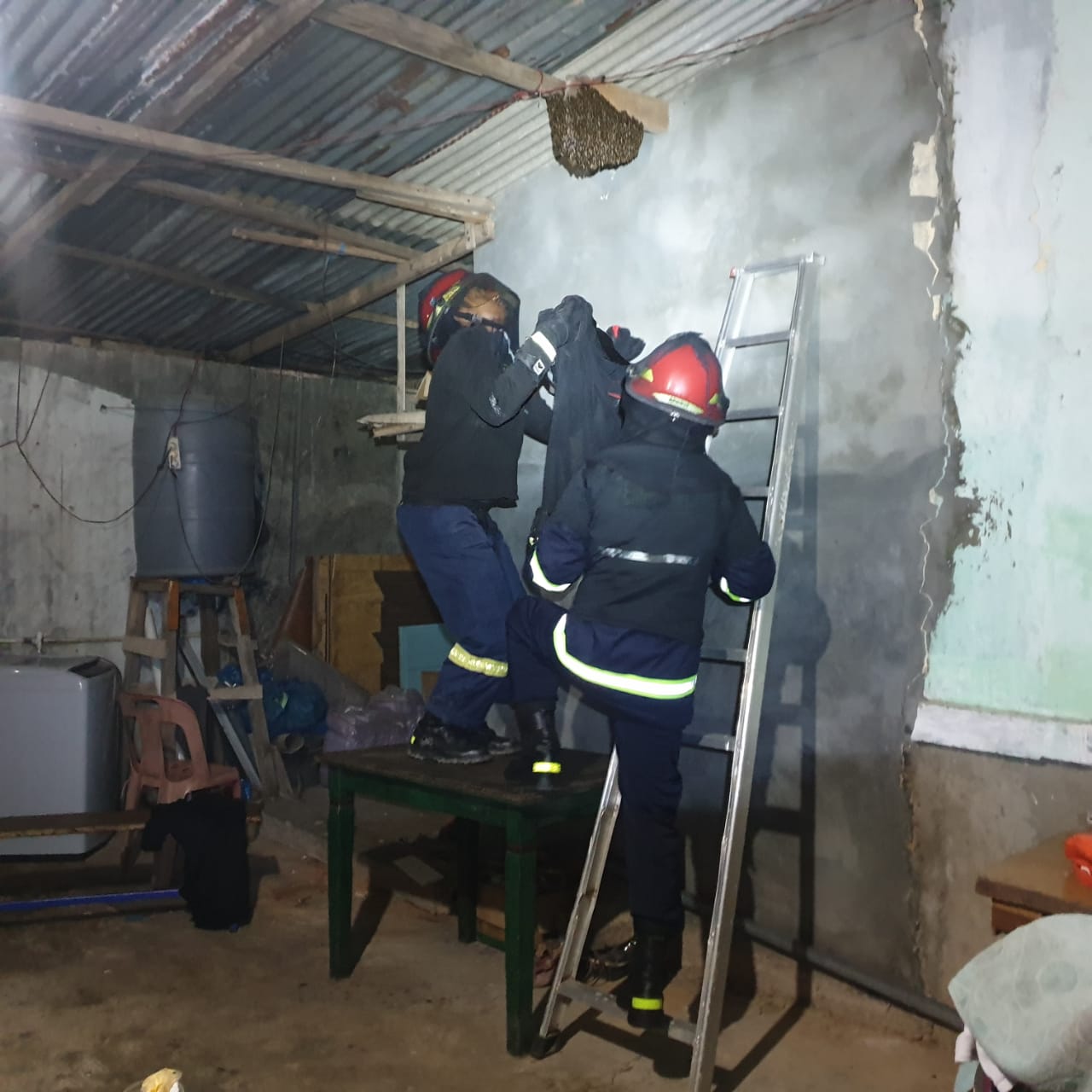 Penanganan Non Kebakaran Evakuasi Tawon Oleh Dinas Pemadam Kebakaran Kota Batam. Rabu malam / 03 Feb 2021. Atas laporan warga di bengkong jl rajawali